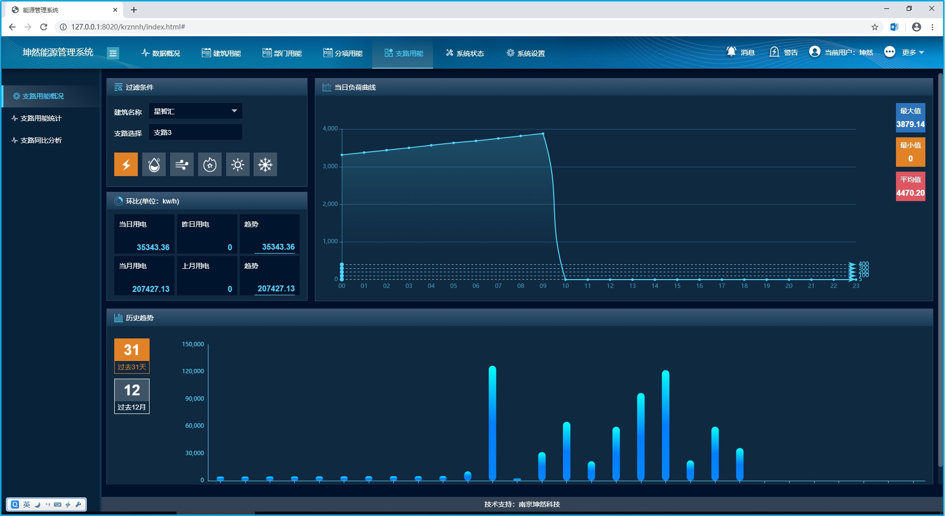 主要可以查看當前項目某一建筑的能耗總體分析數據